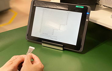 在庫管理システムにより在庫リアルタイム化・見える化を実現、材料のQRコード管理によりピッキングミスを防止し、品質向上に努めています。